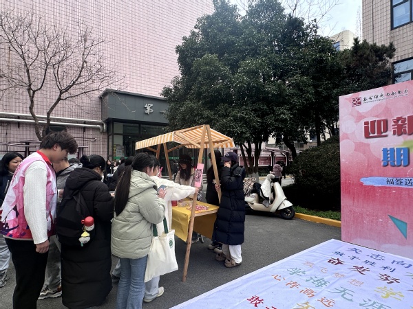 为营造积极向上的考试氛围,激励同学们诚信应考,并进一步推进一站式学生社区建设,创意系精心筹备的“福签送祝福,巧物助迎考,学风促成长”活动于1月14日在21号楼门口顺利开展,吸引了众多师生的热情参与,为校园文化生活增添了一抹亮色。