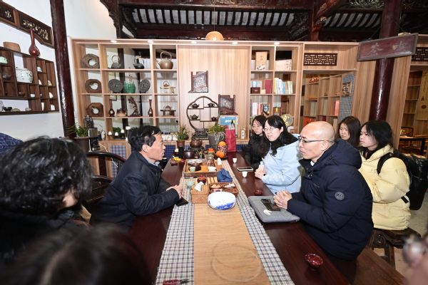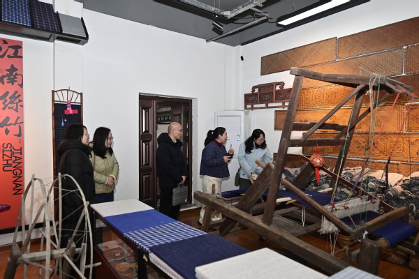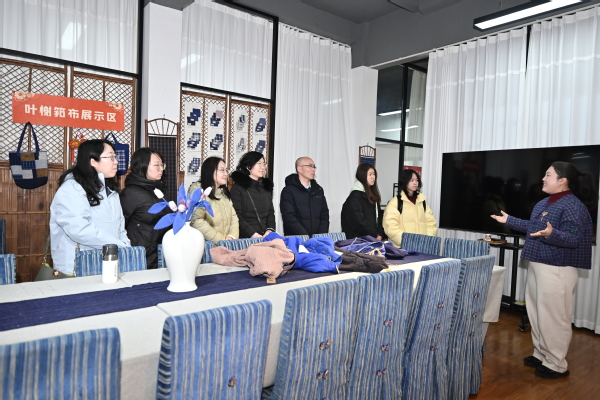 2月25日上午,创意系主任路以兴带队前往叶榭非遗体验馆调研学习,融媒体、视传、农经专业教师及学生代表参与调研。体验馆负责人屠芳接待并座谈。