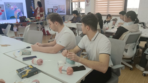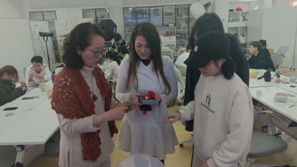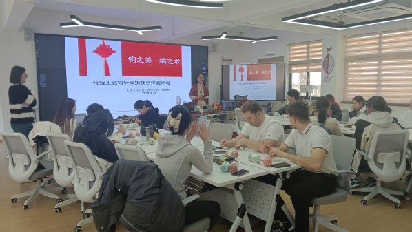 2月28日,为促进国际交流与合作,弘扬中国传统文化,创意系特邀钩编专家刘献梅老师为创意系学生和法国亚眠商学院来访学生开展了一堂精彩的钩编文化体验课。