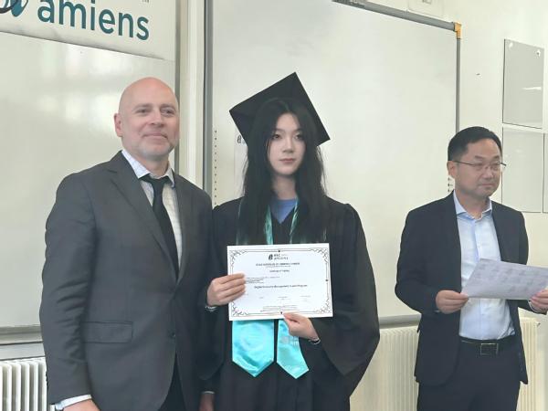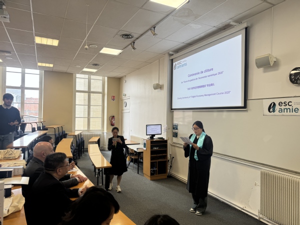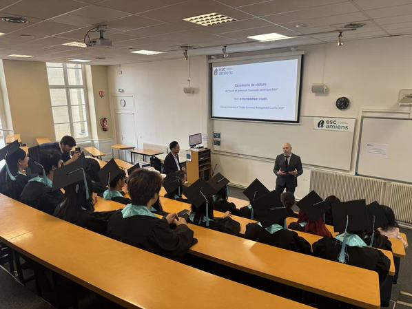 5月21日,法国亚眠高等商学院与上海农林职业技术学院联合举办的“2025中法数字经济班”在法国亚眠高等商学院举行结业典礼。来自两校的校方代表、教师及14名学员参加了本次活动。