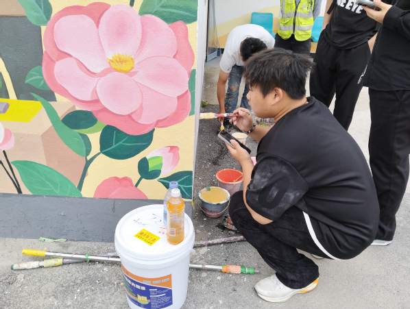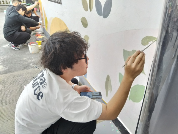 风景工作室成员墙绘服务过程
