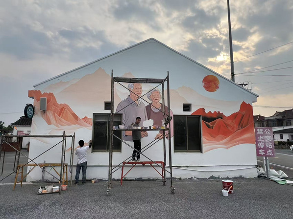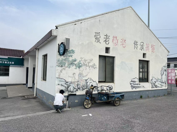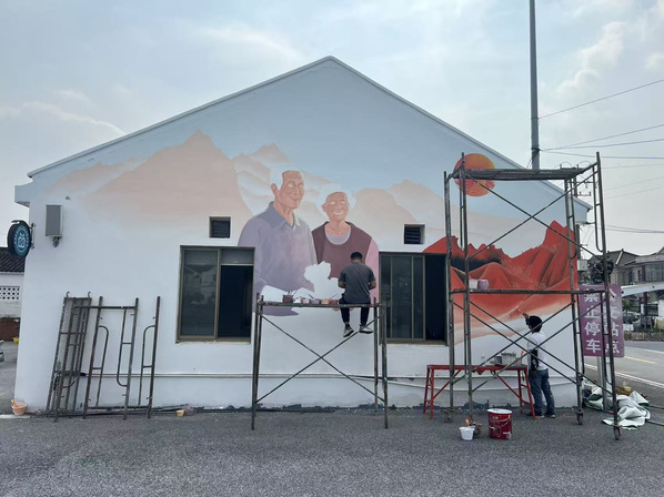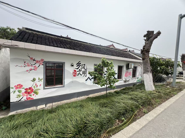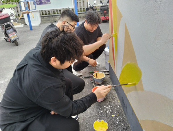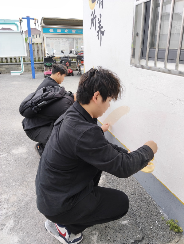 2025年4-5月,风景专业负责人张婷带领风景园林创新中心工作室成员为青浦区王港村继续进行墙绘设计服务。本次服务区别于2024墙绘设计内容,以红色党建和养老主题进行结合,展现乡村红色文创和康养文化结合的设计主题。