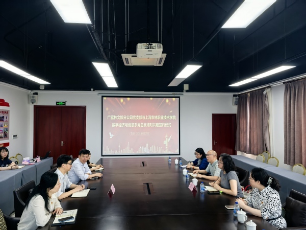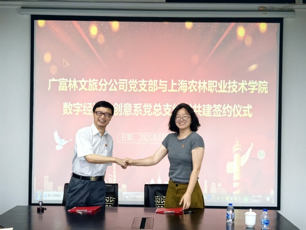 2025年6月27日上午9点,在松江广富林文化遗址文旅党支部的会议室内,创意系主任路以兴、党总支副书记张媛带领部分党员和专业老师与广富林文旅党支部举行了交流座谈暨结对共建签约仪式。松江大学城建设发展有限公司广富林文旅分公司经理俞志贤;党支部书记、副经理倪飞东携党支部委员参加座谈及仪式。
