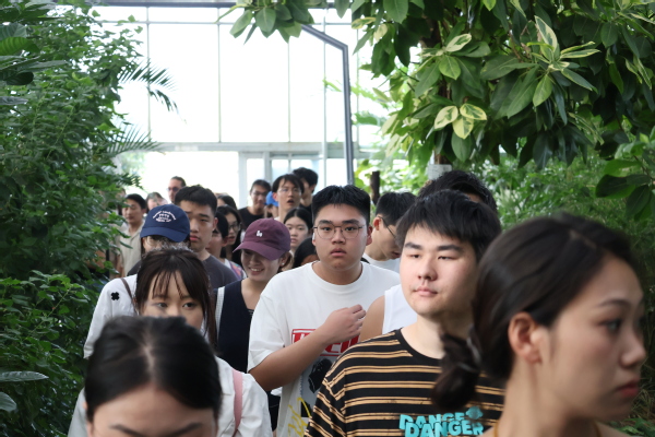 开营仪式结束后,视觉传达专业的学生们随即开启了为期半天的实地调研,沿着吕巷镇蟠桃种植基地、非遗手作工坊、乡村文旅服务中心三条路线深入走访。大家围绕现有蟠桃衍生品的包装痛点展开讨论,发现“部分产品包装缺乏地域辨识度”“文创产品与年轻消费群体审美脱节”等问题,纷纷用手机拍下细节,为后续设计积累第一手素材。