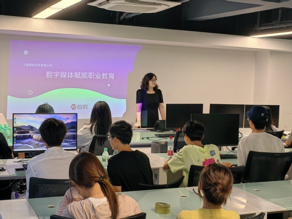 在极载传媒基地,实训聚焦新媒体综合能力培养。学生通过沉浸式观察直播运营全流程,理解从脚本撰写、镜头调度、数据监测到团队协作的实战过程。专家职引由企业经理张海敏对于“痛点提问+情感共鸣+价值输出”的直播话术设计、掌握短视频“15秒抓眼球”的节奏把控技巧、数字人创建及多平台差异化分发等前沿技术进行了讲解展示与介绍。学生职引由已入职学长学姐分享的“短视频引流+直播转化”案例(如行李箱直播单场销售额破百万),不仅让学生明确新媒体“内容为王、数据驱动”的核心,更启发其思考:如何将这套传播逻辑迁移到其他领域?随后的直播实操中,学生尝试以文旅产品为虚拟产品设计口播脚本,初步探索“文化内容+新媒体传播”的结合路径。