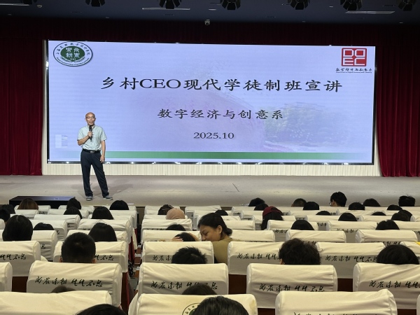 为深化产教融合,精准对接乡村振兴战略对人才的需求,探索现代学徒制育人新模式。2025年10月14日与16日,创意系分别在学院一教202教室和综合楼205报告厅成功举办了两场“乡村CEO现代学徒制班”专题宣讲会。创意系主任路以兴、副主任王海丽、24级辅导员及24级文创、风景、视传、农经、旅管专业同学共同参加了本次活动。