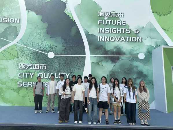 教师带领学生参观“2025世界设计之都大会”展会,“展会直观呈现视觉设计在产业链中的价值定位与创新驱动力”。让新生接轨行业前沿,在生态设计展区解构可持续包装设计逻辑,在 “AI + 设计” 论坛梳理技术应用路径,与 “上海设计 100+” 获奖设计师对话,掌握商业设计从需求洞察到市场验证的全流程,树立设计方案商业可行性评估意识。