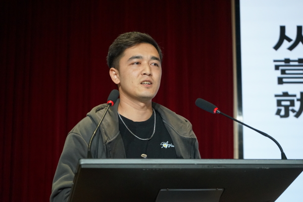 交流环节中,六名优秀的创意系学子依次分享个人事迹。前学生会主席胡艳玲作为大三实习生优秀代表,讲述了自己在学徒制班级从迷茫困惑到独当一面的成长历程;“国赛之星” 张阿龙分享了国赛期间刻苦奋斗最终取得成绩的拼搏故事;先天心脏病孤儿陈凯奇,凭借自身不懈努力成长为服务乡村振兴人才的经历令人动容;在读研究生王同汉四次担任进博会志愿者、助力乡村振兴的实践经历传递责任担当;退伍专升本学子阿拉帕提・艾力,讲述了自己完成从学生、军人再到学生身份转变的奋斗之路;实现“留学 + 考公” 双跨越的毕业生叶伟,分享了通过刻苦努力开辟人生道路的经验。他们的事迹涵盖多元成长维度,传递出满满的正能量。