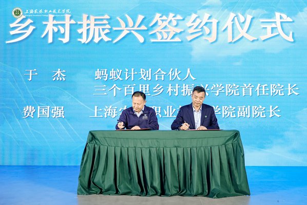 会议现场,乡村振兴签约仪式率先开启。上海农林职业技术学院副院长费国强与蚂蚁计划合伙人、三个百里乡村振兴学院首任院长于杰签约,双方将在乡村产业规划、人才培养等方面展开深度合作。乡村振兴新农人产教融合共同体迎来了新力量,中国二十冶集团有限公司工程设计研究院副院长徐宁、上海极载实业有限公司总经理张海敏及上海农林职业技术学院副院长潘国俭出席了新增理事单位仪式,这一举措将原有的6家理事单位壮大至8家。