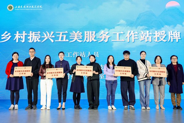 乡村振兴五美服务工作站授牌仪式顺利进行,上海农林职业技术学院“乡村振兴五美服务”以创意系五大专业为基石,深度融合传统文化创意策划、乡村数字内容生产、农业数字品牌设计、和美乡村规划设计及农业数字化转型,构建了“策划-生产-设计-规划-运营”全链条服务体系。通过产教融合模式,师生团队深入乡村一线,在真实项目中将专业知识转化为振兴成果,不仅有效助力了乡村产业升级与文化焕新,更在服务实践中显著提升了师生的专业技能与综合素养,实现了育人效能与社会效益的双向赋能。各工作站人员从上海农林职业技术学院乡村振兴办公室主任周燕华手中接过牌匾,未来他们将依托五美服务工作站进一步开展服务。