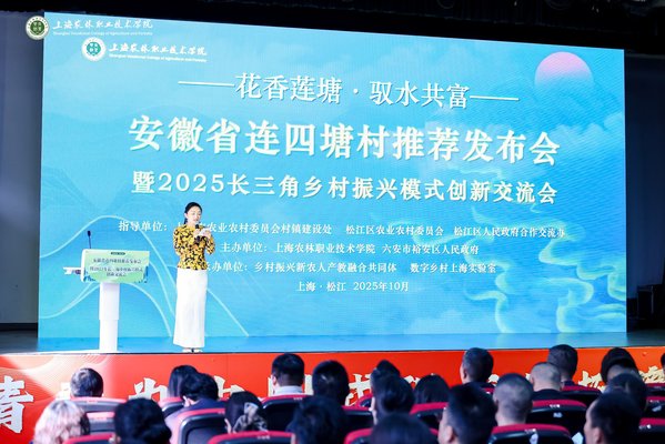 10月28日上午,为深入贯彻《上海农林职业技术学院与六安市裕安区人民政府战略合作框架协议》精神,积极服务长三角一体化发展国家战略,共同探索乡村振兴的创新模式与实践路径,“花香莲塘·驭水共富”安徽省连四塘村推荐发布会暨2025年长三角乡村振兴模式创新交流会在上海农林职业技术学院大礼堂举行。