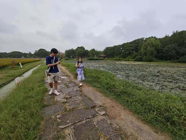 2025年9-10月,创意系教师左宏琴带领创意系新媒体社团,开启了一场别开生面的文化传播实践—— 每周一和周五上午,师生团队准时前往广富林文化遗址开展直播活动,用镜头带网友沉浸式领略千年文化魅力,累计直播时长已超二十多小时。