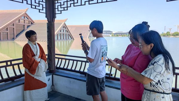 直播过程中,师生主播们分工协作、默契配合。他们不仅细致讲解广富林新石器时代的考古发现、文化特征,还带领网友欣赏遗址内错落有致的园林布局和古色古香的徽派建筑,将历史文化知识与建筑美学巧妙融合。同时,主播团队格外注重与粉丝的互动交流,实时回应网友提问,详细解答关于广富林文化遗址的历史背景、游览攻略、特色看点等问题,直播间氛围热烈,累计吸引数百名网友在线观看。