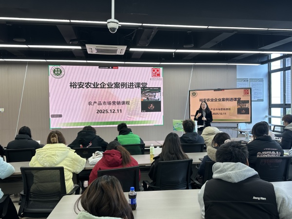 2025年12月11日,在一教415,六安新农人代表刘娟通过腾讯会议的形式走进《农产品市场营销》课堂,面向农经241班级同学和新媒体营销社团成员分享了她回乡三年的助农探索和创业经历。本次案例分享会为接下来课程中“新媒体营销实训”的前奏,由王海丽老师主持。