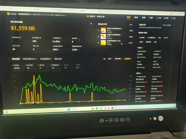 2025年12月24日,培训后首场实战直播正式开播。学生们分工协作,全程主导从台前到幕后的各项工作。后台人员精准完成灯光搭建、贴片装饰、产品链接整理;主播们凭借扎实训练,清晰呈现脚本内容,灵活掌控直播节奏。经过2小时的精彩直播,最终实现销售额1559元,让参与的学生备受鼓舞。直播结束后,导师第一时间开展复盘总结,针对直播过程中的细节问题提出针对性改进措施,帮助学生查漏补缺、深化认知。