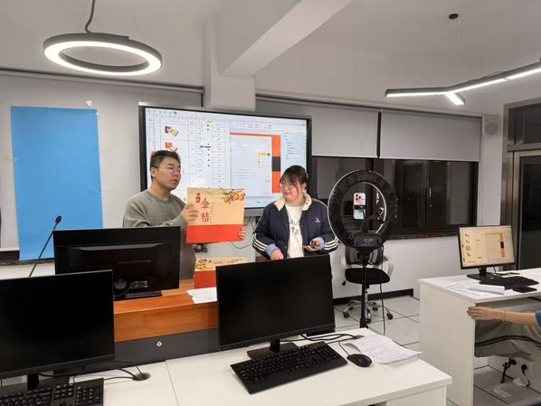 为强化实战应用,培训以广西融安金桔直播为案例,进行全流程拆解教学。从1分钟单品快速讲解到5分钟系列产品深度介绍,导师逐环节示范指导,学生反复模拟训练,逐步掌握直播话术设计、节奏把控等核心技能。在此基础上,学生将理论知识转化为实践成果,自主完成直播预告短视频拍摄、直播间海报设计、背景布置、标题切片制作等前期筹备工作,并通过私域引流实现精准推广,为实战直播奠定坚实基础。
