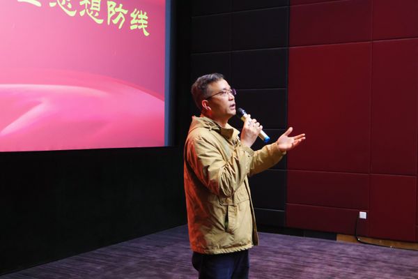 观影结束后,费院长现场为全体成员讲授专题微党课。他结合观影体会,立足学院及部门工作实际,从“忠诚、廉洁、担当”三个维度,对总体国家安全观进行了深入解读。费院长指出,忠诚是党员干部的政治灵魂。他要求全体党员和入党积极分子增强信念、坚定信仰不动摇,在大是大非面前站稳立场,将对党的忠诚落实到具体行动中。在财务工作条线,要严格遵守财经纪律,确保资金流向清晰合规;在部门项目经费使用方面,要树立“过紧日子”思想,加强预算执行与监督,杜绝挪用浪费,以廉洁自律保障个人“政治安全”。费院长强调,国家安全最终落脚于每个人的本职岗位。他要求大家立足岗位发挥应有作用。例如,系部教师要坚守讲台安全、抓好意识形态阵地;后勤服务职工要保障校园设施运行与食品安全。每个人都要成为校园安全的“守门人”,以实干展现新时代党员的担当。
