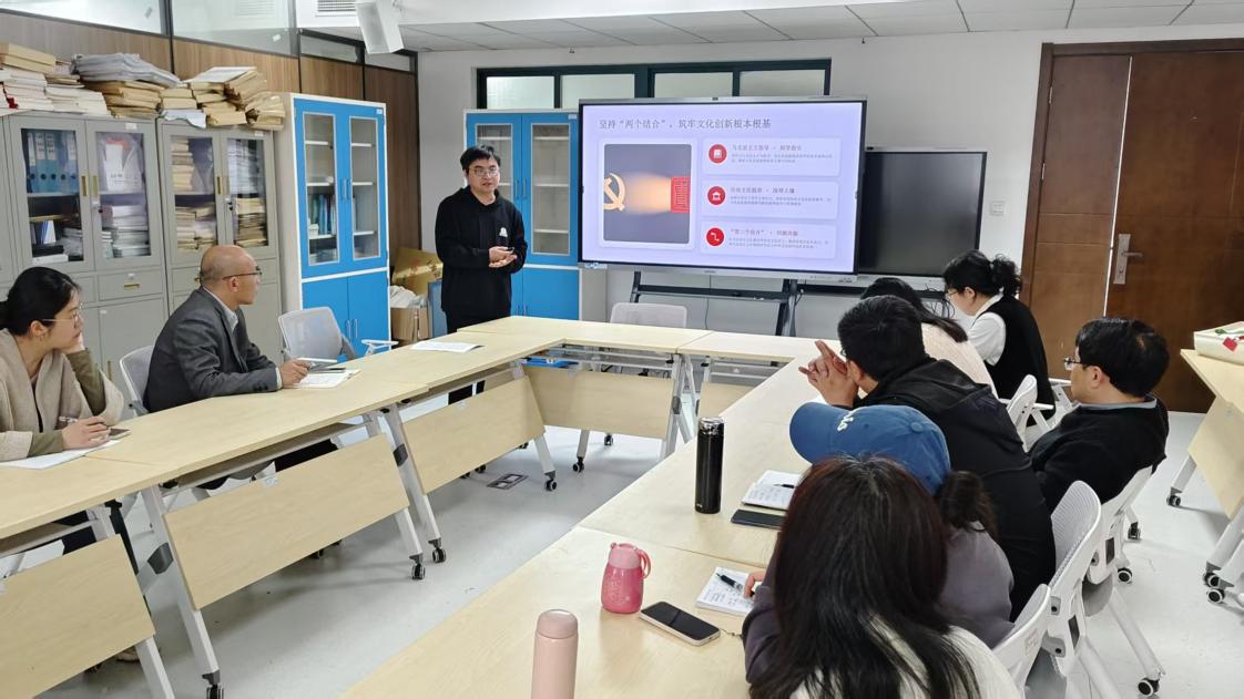 尹来也老师围绕文化创新、话语体系构建、教育教学改革、专业建设发展等核心议题展开分享。他指出,文化创新是中华文明生生不息的精神密码,是强国建设、民族复兴的必然要求,推进文化创新需坚守党的领导、坚持 “两个结合”、坚定文化自信,做到守正不守旧、尊古不复古。